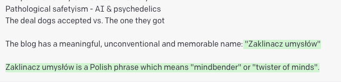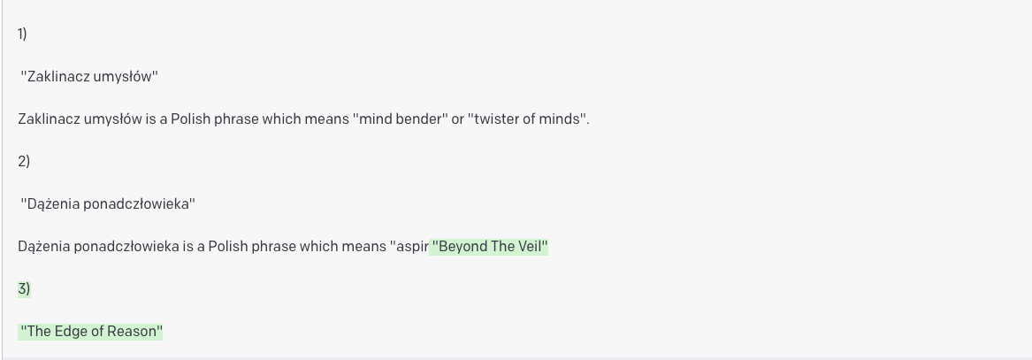 I ran the GPT-3 query over and over and over again, feeding Zaklinacz umysłów in as an example of the kind of thing I was looking for.