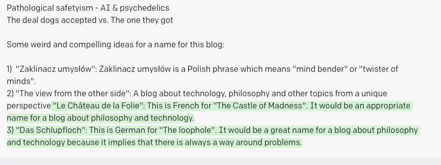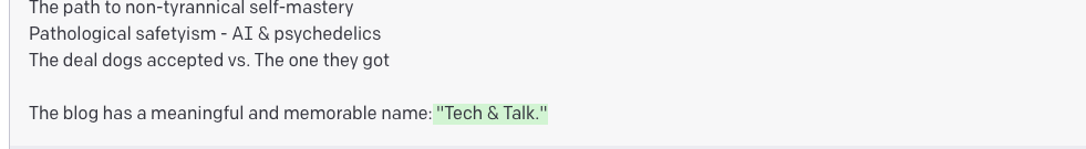 So, I decided to do what any sane person would and fed 50 different article ideas I'd saved into GPT-3 and asked it what for some creative name ideas based on them!